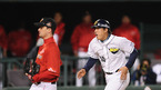 '2008 삼성 PAVV 프로야구' 한국시리즈 3차전 SK 와이번스와 두산 베어스 경기가 29일 잠실야구장에서 열렸다. 4회초 1사 2루 sk 이재원 선취 1타점 중전안타를 치고 1루 김태균 코치의 환영을 받고 있다./잠실=김영민 기자ajyoung@osen.co.kr [Copyright ⓒ 한국 최고의 스포츠 엔터테인먼트 전문...