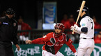 '2008 삼성 PAVV 프로야구' 한국시리즈3차전 두산 베어스와 SK 와이번스의 경기가 29일 잠실야구장에서 벌어졌다. 2회말 선두타자로 나온 두산 김동주가 SK 레이번 투수의 낮은 볼에 하프스윙, 삼진을 당하고 있다./잠실=손용호 기자spjj@osen.co.kr [Copyright ⓒ 한국 최고의 스포츠 엔터테인먼트 전문 미디어...