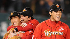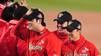 '2008 삼성 PAVV 프로야구' 한국시리즈 3차전 SK 와이번스와 두산 베어스 경기가 29일 잠실야구장에서 열렸다. SK 와이번스가 최정의 결승 투런 홈런에 힘입어 3-2 승리를 거두었다. 경기 종료후 선수들이 승리의 기쁨을 나누고 있다./잠실=김영민 기자ajyoung@osen.co.kr [Copyright ⓒ 한국 최고의...