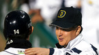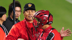 '2008 삼성 PAVV 프로야구' 한국시리즈3차전 두산 베어스와 SK 와이번스의 경기가 29일 잠실야구장에서 벌어져 SK가 3-2로 힘겨운 승리를 거두며 한국시리즈 우승에 한발 더 다가섰다. 김성근 감독이 박경완포수를 반갑게 맞이하고 있다./잠실=손용호 기자spjj@osen.co.kr [Copyright ⓒ 한국 최고의 스포츠...