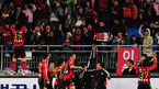 '삼성 하우젠 K-리그 2008' 수원 삼성과 FC 서울의 경기가 29일 수원 월드컵경기장에서 벌어졌다. 후반 종료 직전 서울 기성용이 결승골을 넣자 서울 선수들과 응원단이 환호하고 있다./수원=민경훈 기자 rumi@osen.co.kr [Copyright ⓒ 한국 최고의 스포츠 엔터테인먼트 전문 미디어...