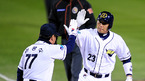 '2008 삼성 PAVV 프로야구' 한국시리즈3차전 두산 베어스와 SK 와이번스의 경기가 29일 잠실야구장에서 벌어졌다. 7회말 무사 두산 최승환이 좌측 담장을 넘어가는 솔로 홈런을 치고 홈으로 들어오며 박수를 치고 있다./잠실=손용호 기자spjj@osen.co.kr [Copyright ⓒ 한국 최고의 스포츠 엔터테인먼트 전문...