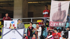 '삼성 하우젠 K-리그 2008' 수원 삼성과 FC 서울의 경기가 29일 수원 월드컵경기장에서 벌어졌다. 서울 서포터스들이 '긴장 ★ 하라!'라는 플래카드를 걸고 응원하고 있다./수원=민경훈 기자 rumi@osen.co.kr [Copyright ⓒ 한국 최고의 스포츠 엔터테인먼트 전문 미디어...