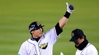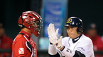 '2008 삼성 PAVV 프로야구' 한국시리즈3차전 두산 베어스와 SK 와이번스의 경기가 29일 잠실야구장에서 벌어졌다. 6회말 1사 1루 홍성흔이 안타를 치고 관중석을 향해 엄지 손가락을 들어보이고 있다./잠실=손용호 기자spjj@osen.co.kr [Copyright ⓒ 한국 최고의 스포츠 엔터테인먼트 전문 미디어...