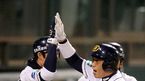'2008 삼성 PAVV 프로야구' 한국시리즈 3차전 SK 와이번스와 두산 베어스 경기가 29일 잠실야구장에서 열렸다. 7회말 무사 선두타자 최승환 좌월 솔로 홈런을 날리고 홈인 동료들의 축하를 받고 있다./잠실=김영민 기자ajyoung@osen.co.kr [Copyright ⓒ 한국 최고의 스포츠 엔터테인먼트 전문 미디어...