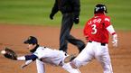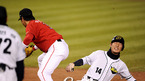 '2008 삼성 PAVV 프로야구' 한국시리즈4차전 두산 베어스와 SK 와이번스의 경기가 30일 잠실야구장에서 벌어졌다. 3회말 1사 2루 두산 이종욱의 텍사스 안타성 타구를 역모션으로 잡은 정근우가 2루주자 전상렬이 안타가 될줄 알고 홈으로 뛰자 2루로 송구 병살을 시키고 있다./잠실=민경훈 기자rumi@osen.co.kr...