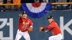 '2008 삼성 PAVV 프로야구' 한국시리즈4차전 두산 베어스와 SK 와이번스의 경기가 30일 잠실야구장에서 벌어졌다. 4회초 1사 주자 1루 SK 최정이 좌중간 1타점 적시타로 홈을 밟은 1루 주자 박재홍이 덕아웃에서 동료들과 기쁨을 나누고 있다./잠실=민경훈 기자rumi@osen.co.kr [Copyright ⓒ 한국 최고의...