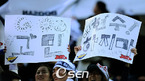 '2008 삼성 PAVV 프로야구' 한국시리즈 4차전 SK 와이번스와 두산 베어스 경기가 30일 잠실야구장에서 열렸다. 두산팬들이 이색 문구를 사용하며 열띤 응원을 펼치고 있다./잠실=김영민 기자ajyoung@osen.co.kr [Copyright ⓒ 한국 최고의 스포츠 엔터테인먼트 전문 미디어 OSEN(www.osen.co.kr)...
