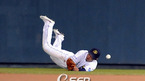'2008 삼성 PAVV 프로야구' 한국시리즈4차전 두산 베어스와 SK 와이번스의 경기가 30일 잠실야구장에서 벌어졌다. 6회초 2사 1루 최정우의 타구를 두산 우익수 전상렬이 쫓아가 몸을 날렸지만 공이 바로 앞에서 떨어지며 2루타가 되고 있다./잠실=손용호 기자spjj@osen.co.kr [Copyright ⓒ 한국 최고의 스포츠...