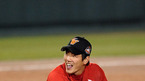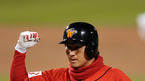 '2008 삼성 PAVV 프로야구' 한국시리즈 5차전 SK 와이번스와 두산 베어스 경기가 31일 잠실야구장에서 열렸다. 8회말 무사 1,2루 두산 홍성흔 중견수 키를 넘기는 안타성 타구가 아웃 처리 되자 아쉬워하고 있다./잠실=김영민 기자ajyoung@osen.co.kr [Copyright ⓒ 한국 최고의 스포츠 엔터테인먼트 전문...