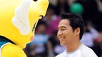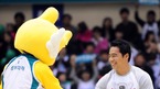 '2008-2009 동부프로미 프로농구' 원주 동부와 안양 KT&G의 개막전이 31일 저녁 강원도 원주시 치악체육관에서 벌어졌다. 시구를 위해 참석한 역도 스타 이배영이 원주 동부 마스코트와 악수를 나누고 있다./원주=윤민호 기자 ymh@osen.co.kr