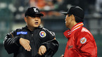 '2008 삼성 PAVV 프로야구' 한국시리즈5차전 두산 베어스와 SK 와이번스의 경기가 31일 잠실야구장에서 벌어졌다. 3회초 2사 주자 3루 SK 이진영 타석에서 SK 김성근 감독이 김풍기 구심에게 투구폼에 대해 어필하고 있다./잠실=민경훈 기자rumi@osen.co.kr