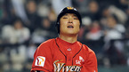 '2008 삼성 PAVV 프로야구' 한국시리즈5차전 두산 베어스와 SK 와이번스의 경기가 31일 잠실야구장에서 벌어졌다. 3회초 2사 주자 3루 SK 이진영 타석에서 두산 선발 김선우에게 삼진을 당한 후 아쉬운 표정을 짓고 있다./잠실=민경훈 기자rumi@osen.co.kr