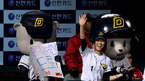 '2008 삼성 PAVV 프로야구' 한국시리즈5차전 두산 베어스와 SK 와이번스의 경기가 31일 잠실야구장에서 벌어졌다. 홍드로 홍수아가 시구에 앞서 두산 마스코트로 부터 공을 건네받고 있다./잠실=손용호 기자spjj@osen.co.kr [Copyright ⓒ 한국 최고의 스포츠 엔터테인먼트 전문 미디어...