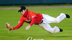 '2008 삼성 PAVV 프로야구' 한국시리즈5차전 두산 베어스와 SK 와이번스의 경기가 31일 잠실야구장에서 벌어졌다. 8회말 무사 1,2루 홍성흔의 잘맞은 타구를 SK 중견수 조동화가 다이빙 캐치하자 홍성흔이 아쉬움을 표하고 있다./잠실=손용호 기자spjj@osen.co.kr [Copyright ⓒ 한국 최고의 스포츠...
