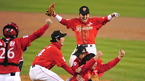 [OSEN=잠실, 박선양 기자]‘비룡군단’ SK 와이번스가 대망의 2008 한국시리즈 챔피언을 차지했다. ‘작년 챔프’ SK는 31일 잠실구장에서 열린 2008 삼성 PAVV 프로야구 한국시리즈 5차전에서 에이스 김광현의 호투와 ‘소년장사’ 최정의 쐐기타 등에 힘입어 2-0으로 두산을 제압하고 1패후 4연승으로 정상 수성에 성공했다. 시리즈 전적...