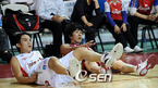 '2008-2009 동부 프로미 프로농구' 서울 SK 나이츠와 창원 LG 세이커스 경기가 2일 잠실학생체육관에서 벌어졌다. 4쿼터 LG 박지현이 슛을 날린 후 넘어지면서 수비를 펼친 SK 김기만과 나란히 공을 바라보고 있다./잠실학생체=김영민 기자ajyoung@osen.co.kr [Copyright ⓒ 한국 최고의 스포츠...