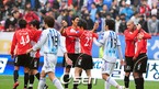 '삼성 하우젠 K-리그 2008' 부산 아이파크와 FC 서울의 경기가 2일 오후 부산 아시아드 주경기장에서 벌어졌다. 후반 서울 이청용의 반칙으로 양팀 선수들이 신경전을 벌이고 있다. 반칙한 이청용은 퇴장당했다./부산=윤민호 기자 ymh@osen.co.kr [Copyright ⓒ 한국 최고의 스포츠 엔터테인먼트 전문 미디어...