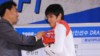 남자배구 드래프트가 3일 오후 서울시 강남구 청담동 리베라 호텔에서 열렸다. 한국전력 공정배 감독이 구단 2라운드 2순위로 최일규를 지명한 뒤 손수 옷을 입혀주고 있다./민경훈 기자rumi@osen.co.kr [Copyright ⓒ 한국 최고의 스포츠 엔터테인먼트 전문 미디어 OSEN(www.osen.co.kr) 무단전재 및 재배포 금지]