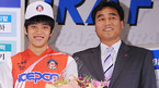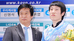 남자배구 드래프트가 3일 오후 서울시 강남구 청담동 리베라 호텔에서 열렸다. LIG손해보험 박기원 감독이 구단 2라운드 4순위로 안준찬과 포토타임을 갖고 있다./민경훈 기자rumi@osen.co.kr [Copyright ⓒ 한국 최고의 스포츠 엔터테인먼트 전문 미디어 OSEN(www.osen.co.kr) 무단전재 및 재배포 금지]