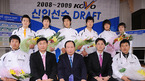 남자배구 드래프트가 3일 오후 서울시 강남구 청담동 리베라 호텔에서 열렸다. 한국전력이 구단 관계자들과 함께 한 공정배 감독이 드래프트 신인 선수들과 함께 포토타임을 갖고 있다./민경훈 기자rumi@osen.co.kr [Copyright ⓒ 한국 최고의 스포츠 엔터테인먼트 전문 미디어 OSEN(www.osen.co.kr) 무단전재 및 재배포 금지]