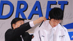 남자배구 드래프트가 3일 오후 서울시 강남구 청담동 리베라 호텔에서 열렸다. 신생 우리캐피탈 김남성 감독이 최귀엽을 1라운드 3순위로 지명한 뒤 손수 점퍼를 입혀 주고 있다./민경훈 기자rumi@osen.co.kr [Copyright ⓒ 한국 최고의 스포츠 엔터테인먼트 전문 미디어 OSEN(www.osen.co.kr) 무단전재 및 재배포 금지]