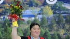 2008 고양아시아클럽역도선수권대회가 6일 오후 경기도 고양시 고양꽃전시관에서 열렸다. 여자 역도 +75kg급 경기에 출전한 베이징 올림픽 금메달리스트 장미란이 인상 120KG, 용상 160KG을 들어 올려 금메달을 차지했다. 장미란이 꽃다발을 흔들어 보이며 기뻐하고 있다./고양=윤민호 기자ymh@osen.co.kr [Copyright ⓒ 한국...