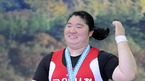2008 고양아시아클럽역도선수권대회가 6일 오후 경기도 고양시 고양꽃전시관에서 열렸다. 여자 역도 +75kg급 경기에 출전한 베이징 올림픽 금메달리스트 장미란이 인상 120KG 용상 160KG을 들어 올리려 금메달을 차지했다. 장미란이 금메달을 받고 환한 미소를 짓고 있다./고양=윤민호 기자ymh@osen.co.kr [Copyright ⓒ 한국...