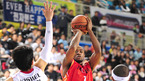 '2008-2009 동부 프로미 프로농구' 인천 전자랜드와 울산 모비스의 경기가 8일 인천 삼산체육관에서 벌어졌다. 3쿼터 모비스 함지훈이 전자랜드 주태수를 앞에 놓고 훅슛을 시도하고 있다./인천=손용호 기자spjj@osen.co.kr [Copyright ⓒ 한국 최고의 스포츠 엔터테인먼트 전문 미디어...