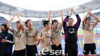 '삼성 하우젠 K-리그 2008' 인천 유나이티드와 수원 삼성 경기가 9일 오후 인천월드컵경기장에서 벌어졌다. 수원이 백지훈의 선취골에 힘입어 3-1 승리를 거두며 정규리그 1위를 확정지었다. 경기 종료 후 선수들이 서포터스와 함께 승리의 기쁨을 나누고 있다./인천=김영민 기자ajyoung@osen.co.kr [Copyright ⓒ...
