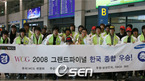 [OSEN=인천공항, 고용준 기자] 역대 최고의 성적으로 WCG 2008 종합 우승을 차지한 한국 선수단이 6일간의 일정을 마무리하고 당당하게 개선했다. 11일 오후 1시 인천 영종도 국제공항에 KE906편으로 귀국한 한국 선수단은 금메달 3, 은메달 3, 동메달 1개의 사상 최대의 성적으로 WCG 4번째 종합 우승을 차지했다. WCG 2006...