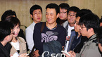 일본시리즈에서 최악의 경기를 펼친 요미우리 자어언츠 이승엽이 11일 김포공항으로 입국했다. 이승엽은 절치부심 2009년을 자신의 해로 만들기 위해 WBC 참가를 고사했다. 이승엽이 침울한 표정으로 취재진과 얘기를 나누고 있다./김포공항=손용호 기자spjj@osen.co.kr [Copyright ⓒ 한국 최고의 스포츠 엔터테인먼트 전문 미디어...