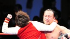 왕년의 프로레슬러 고 김일을 추모하는 제3회 '포에버히어로(Forever Hero)' 대회가 12일 저녁 서울 방이동 올림픽공원 제2체육관에서 벌어졌다. 이왕표가 밥 샙과 종합격투기 대결서 1라운드에 암바로 이기자 개그우먼 이영자가 링 위에 뛰어올라 안기며 기뻐하고 있다./올림픽공원=윤민호 기자ymh@osen.co.kr...