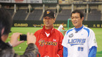 '2008 아시아시리즈'의 개막을 하루 앞두고 12일 일본 도쿄돔구장에서 SK와이번스와 세이부의 훈련이 열렸다. SK김성근 감독과 세이부의 세이케 코치가 취재진 앞에서 기념촬영을 하고 있다./도쿄=민경훈기자rumi@osen.co.kr [Copyright ⓒ 한국 최고의 스포츠 엔터테인먼트 전문 미디어...