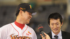 '2008 아시아시리즈' 한국 대표 SK 와이번스와 일본 대표 세이부 라이온즈의 경기가 13일 일본 도쿄돔 구장에서 벌어졌다. 이 날 경기에서 SK는 이재원의 결승투런포와 철벽 불펜진의 이어던지기가 빛을 발해 4-3의 짜릿한 역전승을 거뒀다. 경기를 마치고 SK 이재원이 일본 방송사와 가진 인터뷰에서 환하게 미소짓고 있다./도쿄돔=민경훈...