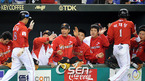 '2008 아시아시리즈' 한국 대표 SK 와이번스와 대만 대표 퉁이 라이온스의 경기가 15일 일본 도쿄돔 구장에서 벌어졌다. 6회초 무사 주자 2,3루 SK 조동화가 중전 2타점 적시타로 홈을 밟은 정근우와 박재상이 덕아웃에서 동료들과 하이파이브를 하고 있다./도쿄돔=민경훈기자rumi@osen.co.kr [Copyright ⓒ 한국...