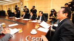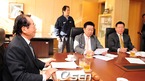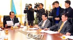 히어로즈 장원삼의 삼성 현금 트레이드 승인 여부를 논의하기 위한 한국야구위원회 긴급 이사회가 19일 오전 서울 도곡동 야구회관에서 열렸다. 최근 새로 취임한 안성덕 LG 사장(오른쪽에서 두 번째)이 김응룡 삼성 사장과 나란히 앉아 있다. /윤민호 기자ymh@osen.co.kr [Copyright ⓒ 한국 최고의 스포츠 엔터테인먼트 전문 미디어...