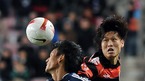 '삼성 하우젠K리그 2008' 6강 플레이 오프 울산 현대와 포항 스틸러스 경기가 22일 오후 울산문수월드경기장에서 벌어졌다. 전반 포항 노병준과 울산 김민오가 공중에서 떨어지는 볼을 기다리고 있다./울산=윤민호 기자ymh@osen.co.kr [Copyright ⓒ 한국 최고의 스포츠 엔터테인먼트 전문 미디어...