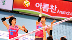 'NH 농협 08-09 V리그'가 22일 대전 충무체육관에서 공식 개막전을 시작으로 5개월의 대장정에 돌입했다. 흥국생명과 KT&G의 여자부 개막전 2세트 KT&G 한은지가 흥국생명 카리나 김혜진의 블로킹을 피해 페인트 공격을 하고 있다./대전=손용호 기자spjj@osen.co.kr [Copyright ⓒ 한국 최고의 스포츠...