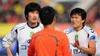 '삼성 하우젠 K-리그 2008' 성남 일화와 전북 현대의 6강 플레이오프 경기가 23일 탄천 종합운동장에서 벌어졌다. 전반 27분 전북 알렉스의 문전 파울 때 성남에 페널티킥이 주어지자 전북 정경호와 조재진이 부심에게 어필하고 있다./성남=민경훈 기자 rumi@osen.co.kr [Copyright ⓒ 한국 최고의 스포츠 엔터테인먼트...