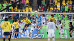 '삼성 하우젠 K-리그 2008' 성남 일화와 전북 현대의 6강 플레이오프 경기가 23일 탄천 종합운동장에서 벌어졌다. 이 날 경기에서 전북은 연장에 터진 루이스의 결승골에 힘입어 2-1로 역전승을 거두었다. 연장 후반 경기 종료가 얼마 남지 않은 상황에서 성남은 정성룡 골키퍼(오른쪽)까지 나와서 총공격을 펼치고 있지만 전북의 권순태...