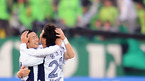 '삼성 하우젠 K-리그 2008' 성남 일화와 전북 현대의 6강 플레이오프 경기가 23일 탄천 종합운동장에서 벌어졌다. 이 날 경기에서 전북은 연장에 터진 루이스의 결승골에 힘입어 2-1로 역전승을 거두었다. 경기를 마치고 전북 최태욱과 홍진섭이 포옹을 하고 있는 뒤로 성남 김동현이 침울한 표정으로 바라보고 있다./성남=민경훈 기자...