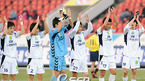 '삼성 하우젠 K-리그 2008' 성남 일화와 전북 현대의 6강 플레이오프 경기가 23일 탄천 종합운동장에서 벌어졌다. 이 날 경기에서 전북은 연장에 터진 루이스의 결승골에 힘입어 2-1로 역전승을 거두었다. 경기를 마치고 전북 선수들이 응원단의 환호를 받고 있다./성남=민경훈 기자 rumi@osen.co.kr [Copyright...