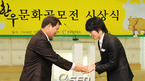 한우문화공모전 시상식이 27일 저녁 서울 서초구 국제전자센터에서 열렸다. 남호경 한우 협회장이 디자인부문 일반부 암소상에 뽑힌 정재훈에게 상패를 전달하고 함께 포토타임을 갖고 있다./민경훈 기자 rumi@osen.co.kr [Copyright ⓒ 한국 최고의 스포츠 엔터테인먼트 전문 미디어 OSEN(www.osen.co.kr) 제보및 보도자료...