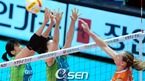 'NH농협2008~2009 V-리그' GS칼텍스와 KT&G의 경기가 3일 오후 인천 도원실내체육관에서 열렸다. 2세트 KT&G 마리안이 GS칼텍스 정대영의 블로킹에 앞서 빠른 공격을 펼치고 있다/인천=윤민호 기자ymh@osen.co.kr [Copyright ⓒ 한국 최고의 스포츠 엔터테인먼트 전문 미디어...