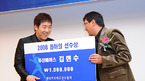 한국 프로야구 선수협회 2008 정기총회가 3일 서울 양재동 교육문화회관에서 열렸다. 이 자리에서 손민한 선수협의회 회장이 두산 김현수에게 2008 올해의 선수상과 꽃다발을 시상하고 있다./민경훈 기자 rumi@osen.co.kr [Copyright ⓒ 한국 최고의 스포츠 엔터테인먼트 전문 미디어 OSEN(www.osen.co.kr)...