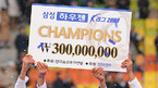 프로축구 챔피언을 가리는 '삼성 하우젠 K-리그 2008' 챔피언결정 2차전 수원삼성과 FC서울 경기가 7일 수원월드컵경기장에서 열려 수원삼성이 2-1 승리를 거두며 챔피언컵을 거머쥐었다. 수원 서동현 김대의가 샴페인 세례를 받으며 우승 상금을 들어보이고 있다. /수원=민경훈 기자 rumi@osen.co.kr