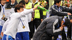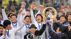프로축구 챔피언을 가리는 '삼성 하우젠 K-리그 2008' 챔피언결정 2차전 수원삼성과 FC서울 경기가 7일 수원월드컵경기장에서 열려 수원삼성이 2-1 승리를 거두며 챔피언컵을 거머쥐었다. 경기 종료후 수원 차범근 감독과 선수들이 수상후 환호 하고 있다./수원=민경훈 기자 rumi@osen.co.kr