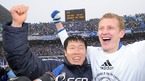 프로축구 챔피언을 가리는 '삼성 하우젠 K-리그 2008' 챔피언결정 2차전 수원삼성과 FC 서울 경기가 7일 수원월드컵경기장에서 열려 수원 삼성이 2-1로 승리 4번째 별을 가슴에 달게 됐다.수원 차범근 감독과 마토가 승리의 환호를 하고 있다./수원=윤민호 기자ymh@osen.co.kr