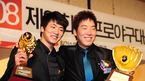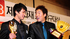 전통을 자랑하는 '2008 제일화재 프로야구대상 시상식'이 로이스터 감독을 제외한 7개구단 감독과 수상자들 각 구단 관계자들이 참석한 가운데 8일 오전 프라자 호텔에서 벌어졌다. 대상을 수상한 두산 김현수와 최고투수상을 수상한 SK 김광현이 밝은 표정으로 포토타임을 갖고 있다./손용호 기자spjj@osen.co.kr